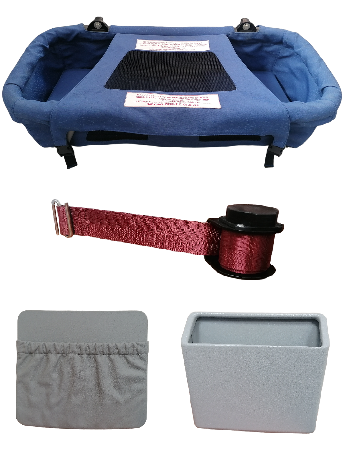 Детские люльки авиационные. Витрины и карманы для литературы. Страховочные ремни.